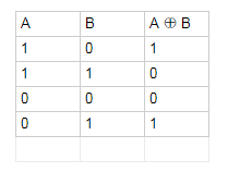 在此之前,我們先來學習一下邏輯異或(XOR,符號是⊕ )的基本知識,請看下面這個表格。